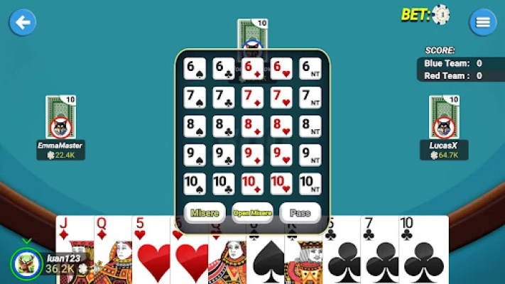 - Flexible bidding system — Includes No Trump, Misère, and Open Misère.