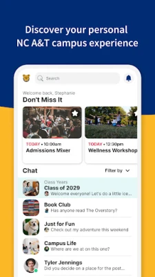 Starting college is an exciting journey, and NCAT Next is here to help you every step of the way. From meeting other students to discovering opportunities to get involved, this app is your all-in-one tool to make the most of your NC A&T experience.