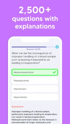 Our Certified Phlebotomy Technician (CPT) exam prep application is renowned for its focused and thorough content analysis, cutting-edge learning methods, and rigorous precision. We delve deep into every section of the latest Phlebotomy exam, consistently refining our material to stay relevant. For both correct and incorrect answers, we offer in-depth explanations to reinforce comprehension of crucial exam concepts.