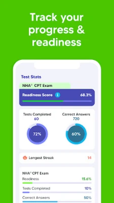 Additionally, our mobile app provides a personalized study plan based on your skill level, study frequency, and target test date. Not sure when you want to take the exam? You can adjust your study plan as often as you like. Our proprietary readiness score will help you determine when you’re ready to take the real exam and pass with a high score on your first try.